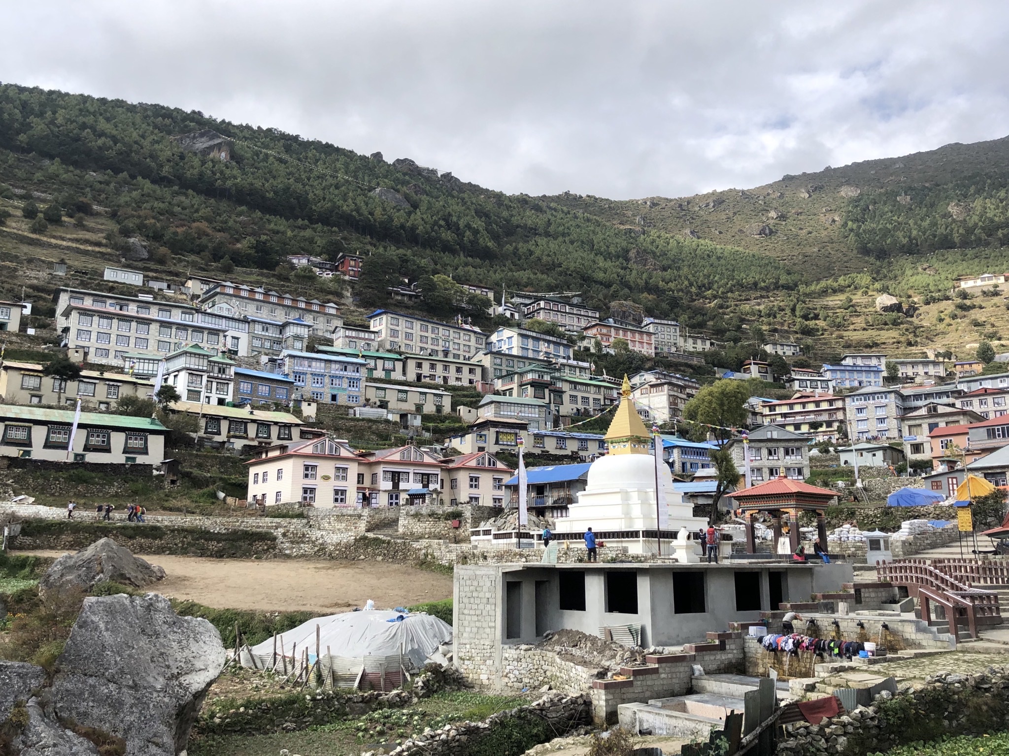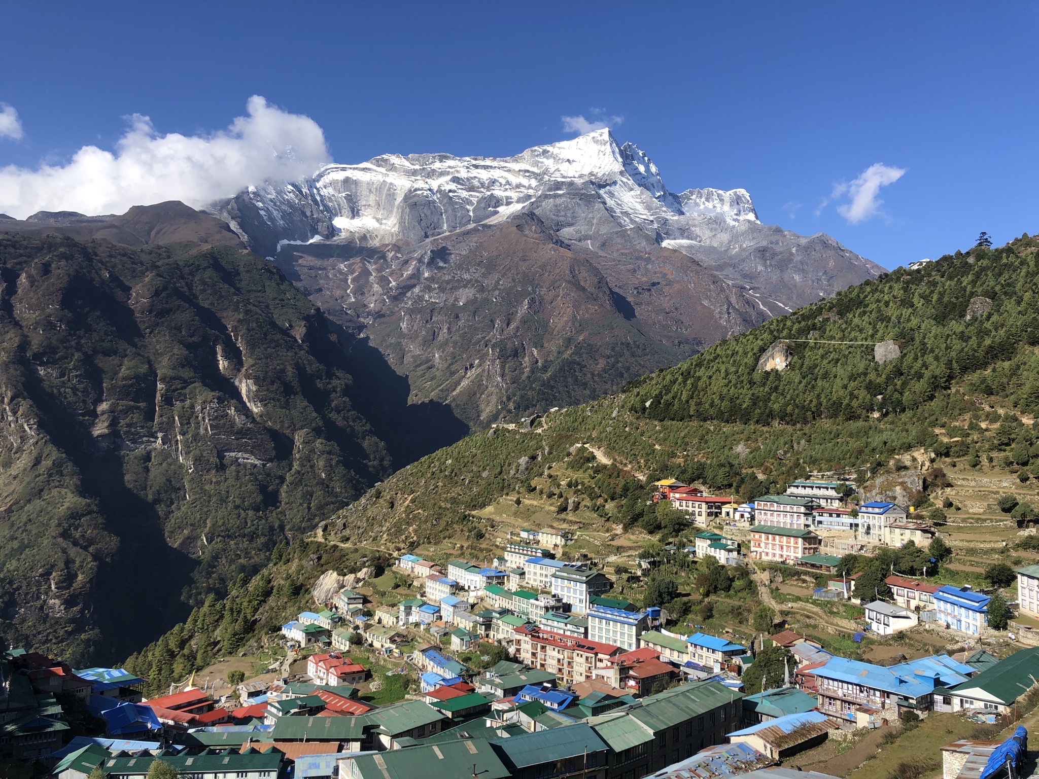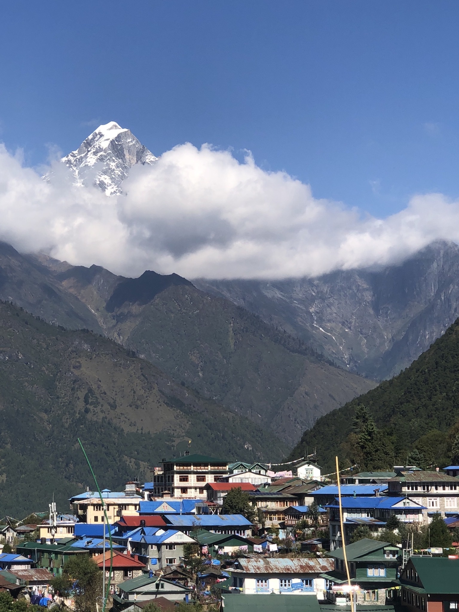 Menjelang pukul 15:00 Namche Bazar, dengan atap-atap rumahnya yang khas, warna-warni, terlihat. Sebuah desa, atau mungkin layak disebut kota kecil, di tengah pegunungan, ramai, dengan fasilitas toko-toko perlengkapan pendakian, toko makanan dan minuman, kios tiket pesawat, ATM, laundry, hair washing, cafe, billiard, lengkap dengan musik ingar bingarnya, rock, yeaahhh!