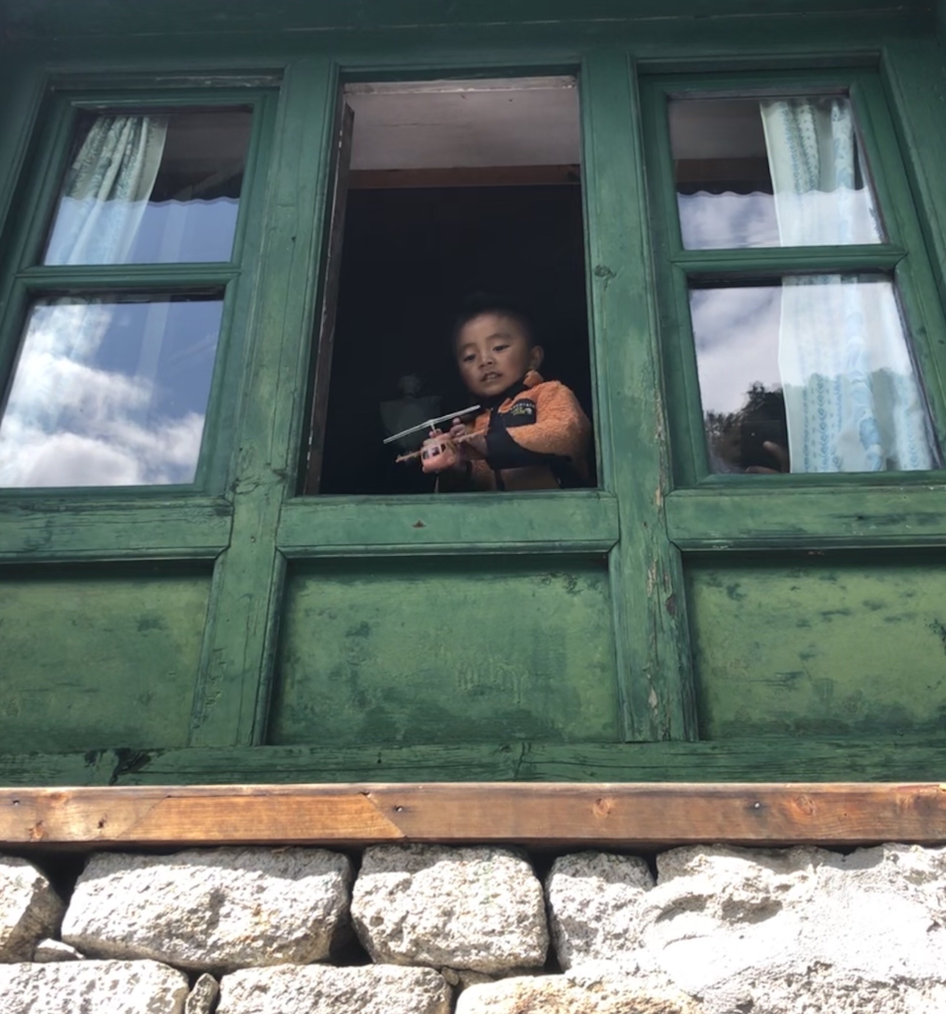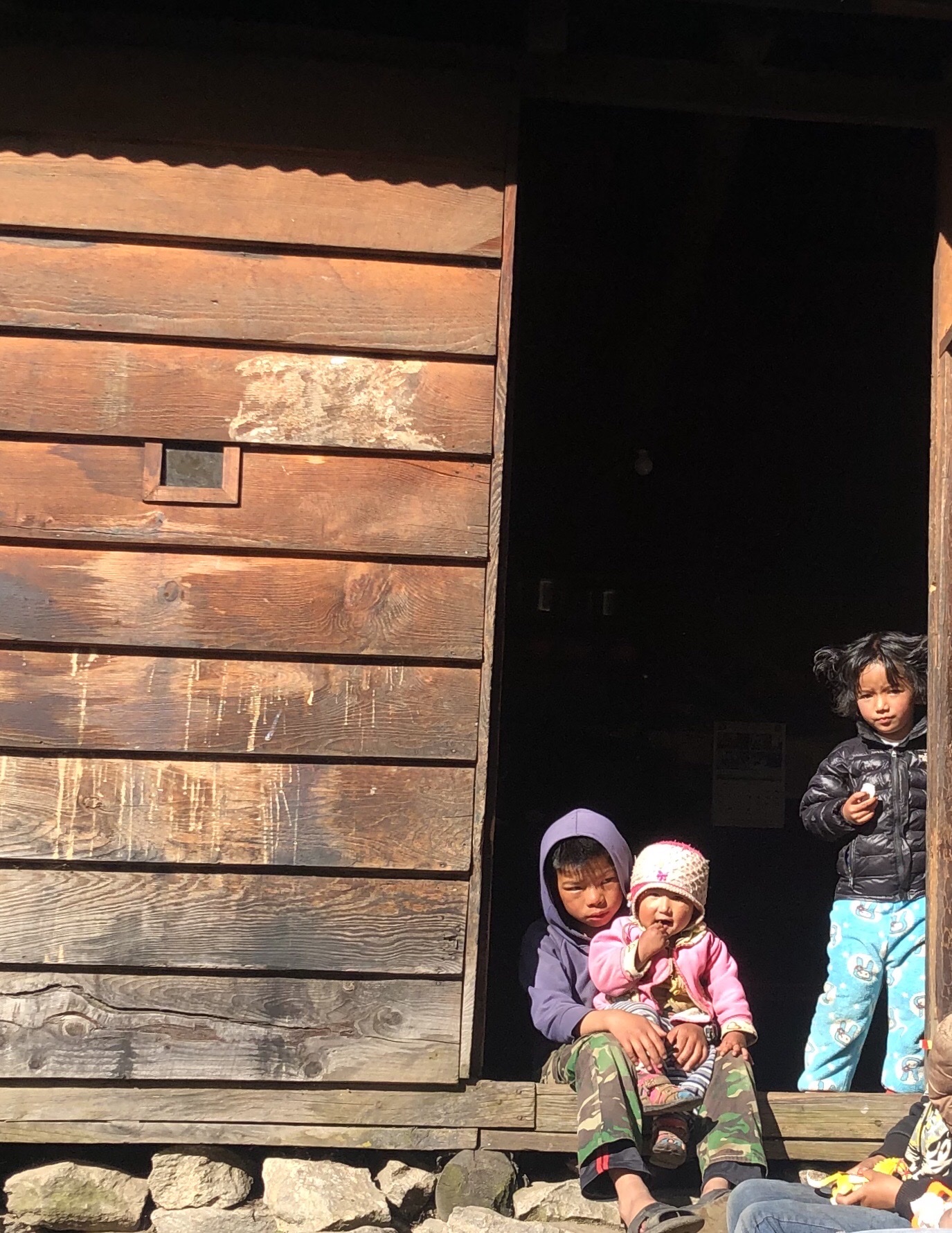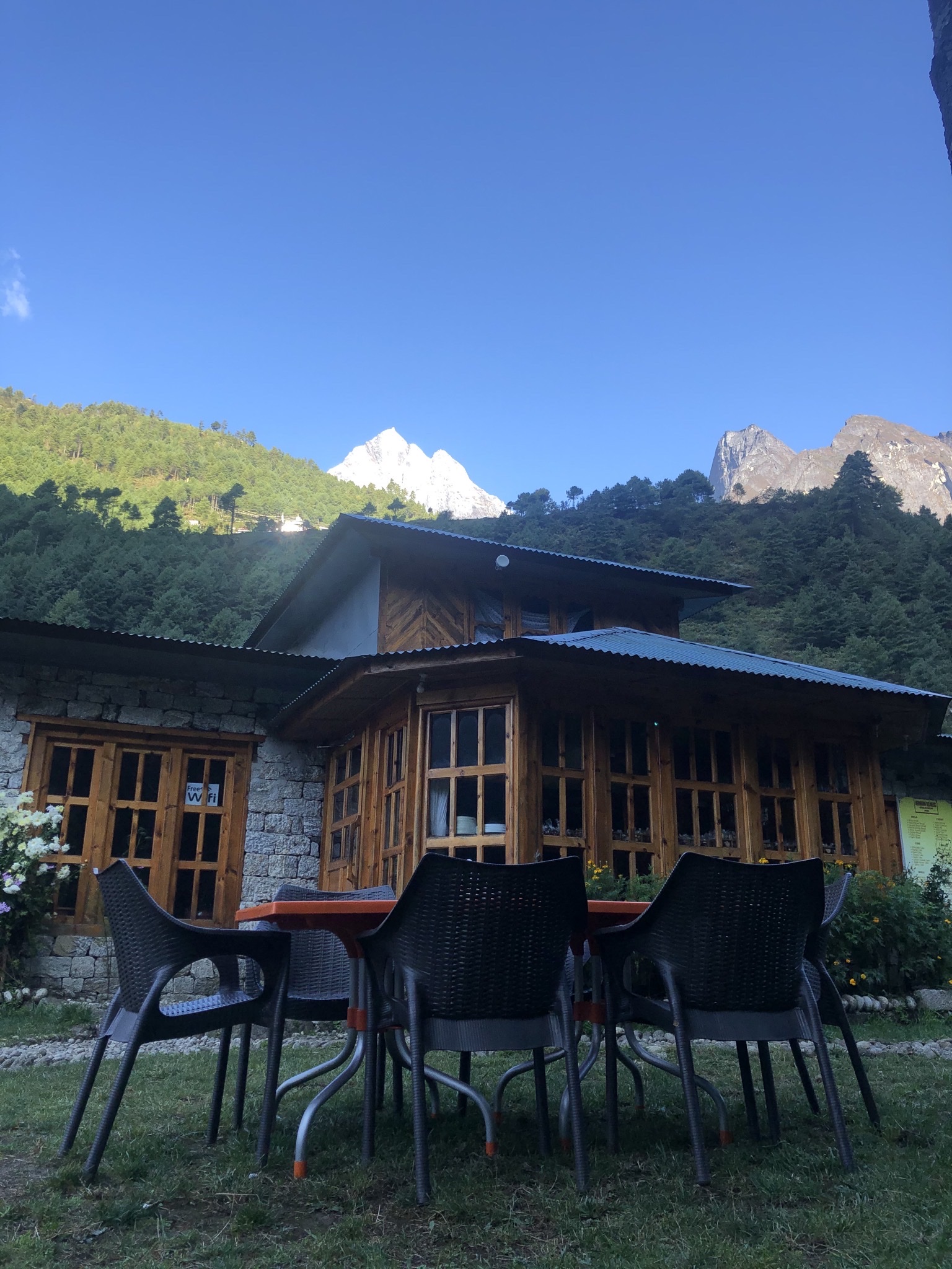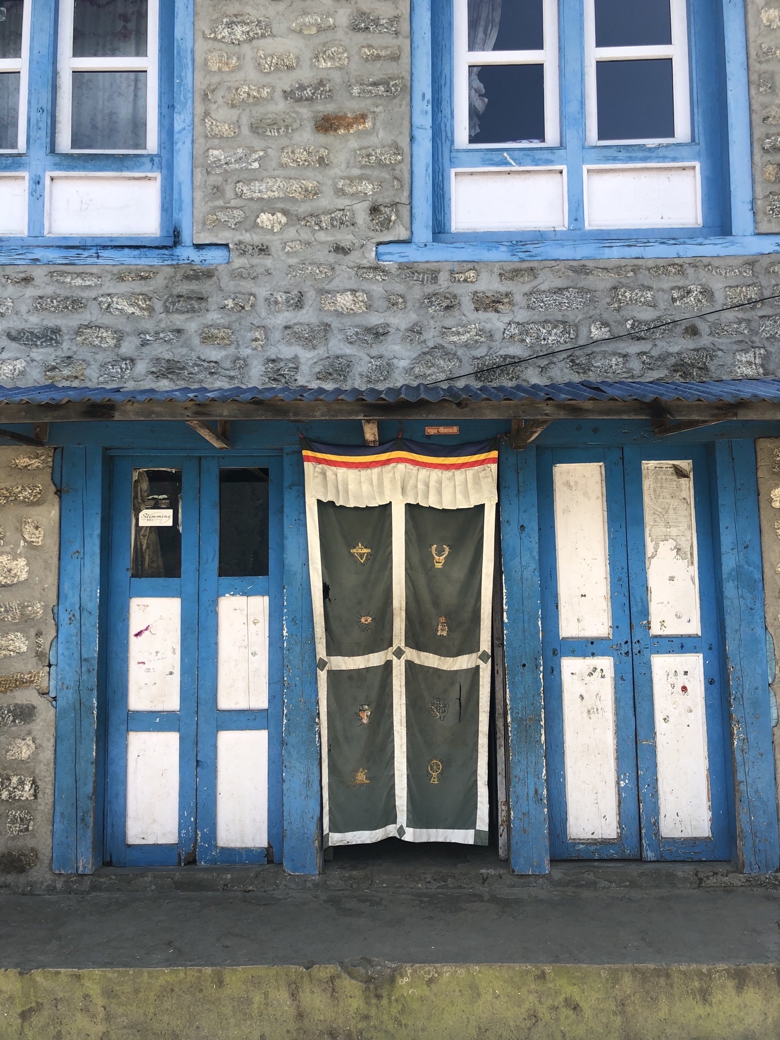 Phakding (2.652 mdpl) adalah tujuan bermalam pertama kami. Sebuah hotel, atau tepatnya lodge (kamar ukuran paspasan dengan dua ranjang dan, ya, hanya itu, dua ranjang), bangunan yang indah dan nyaman, seolah di Eropa. Tea time, masih sore, di teras luarnya, cuaca belum terlalu dingin, sambil memandang lalu lalang para pendaki, porter dan zopke.