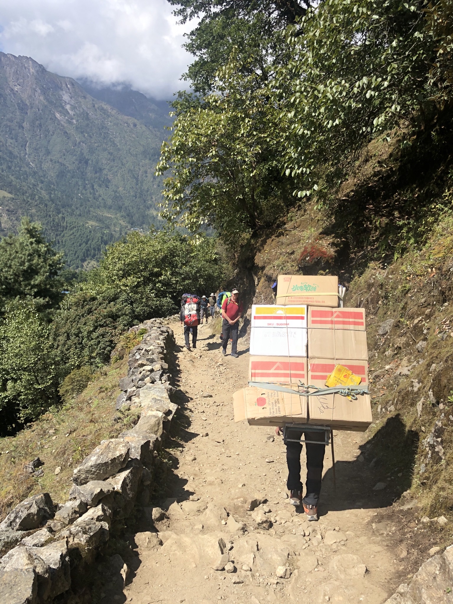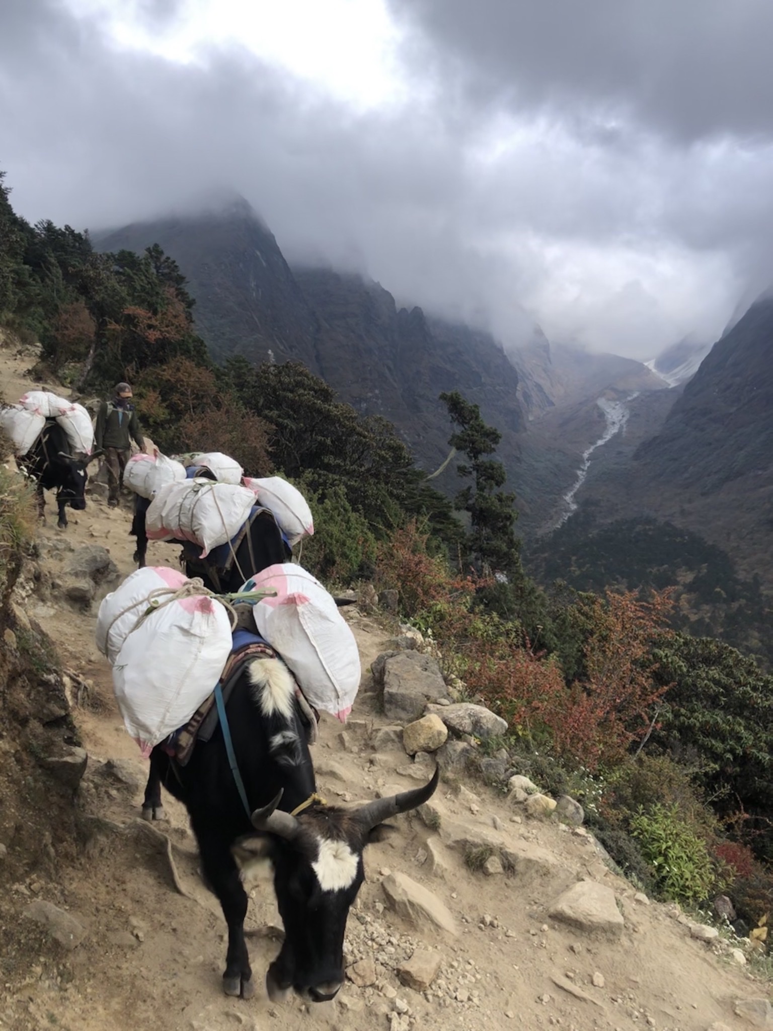 Peak season macam ini juga menambah ramai naik turun penduduk lokal yang berprofesi sebagai porter, plus rombongan zopke-zopke, yak-yak dan keledai-keledai yang membawa beban berat di punggungnya. (Tas berisi seluruh perlengkapan kami juga dibawa oleh porter, masing-masing dua tas per porter, minimal 30 kilogram.)