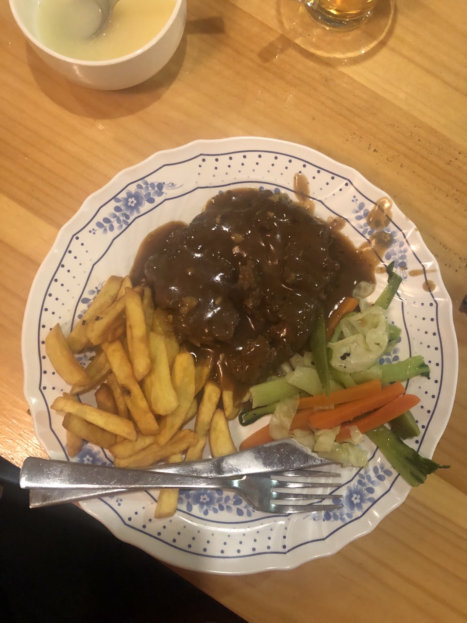 Dan seporsi steak yak untuk makan malam. Enak. Alot.