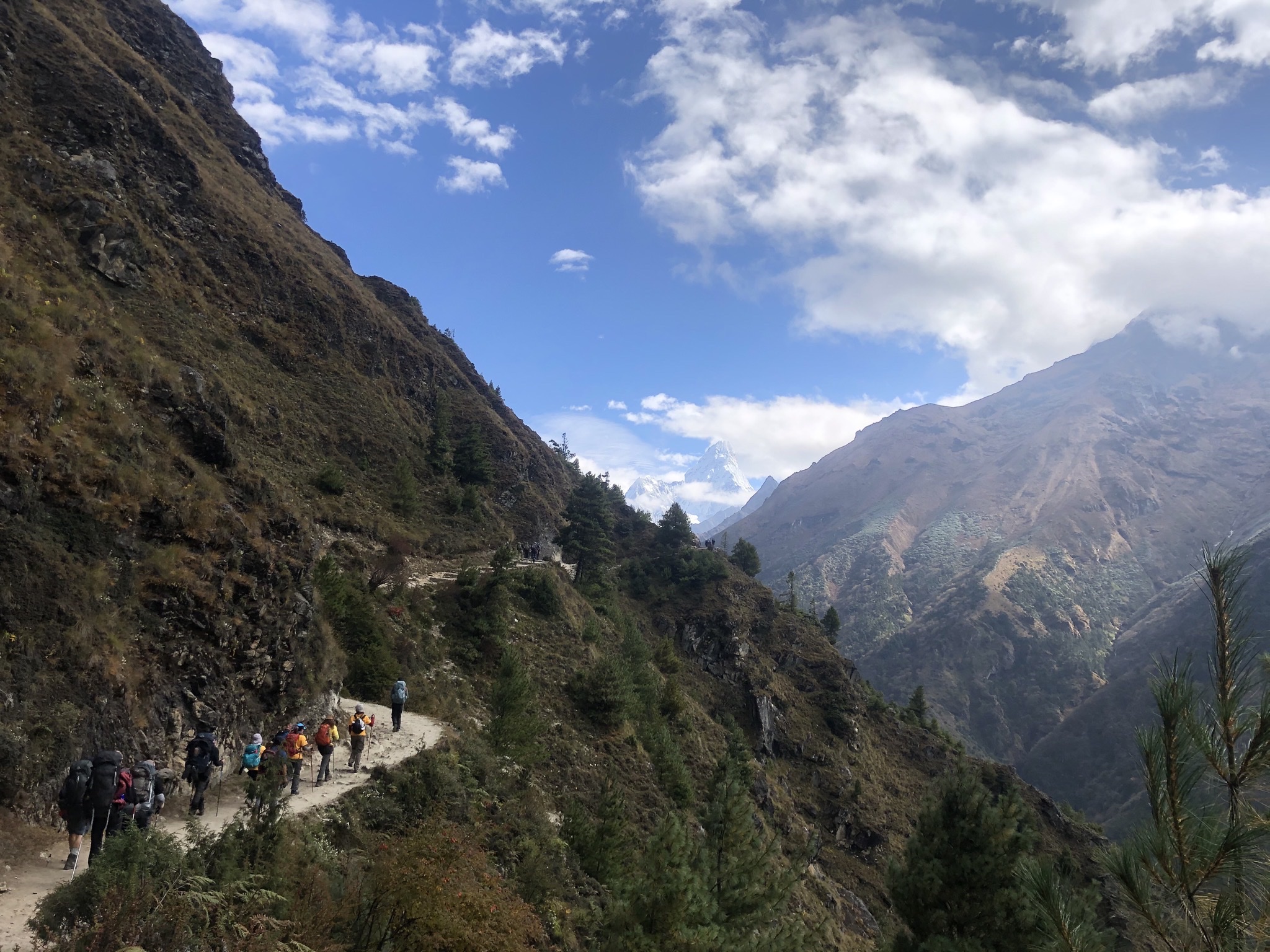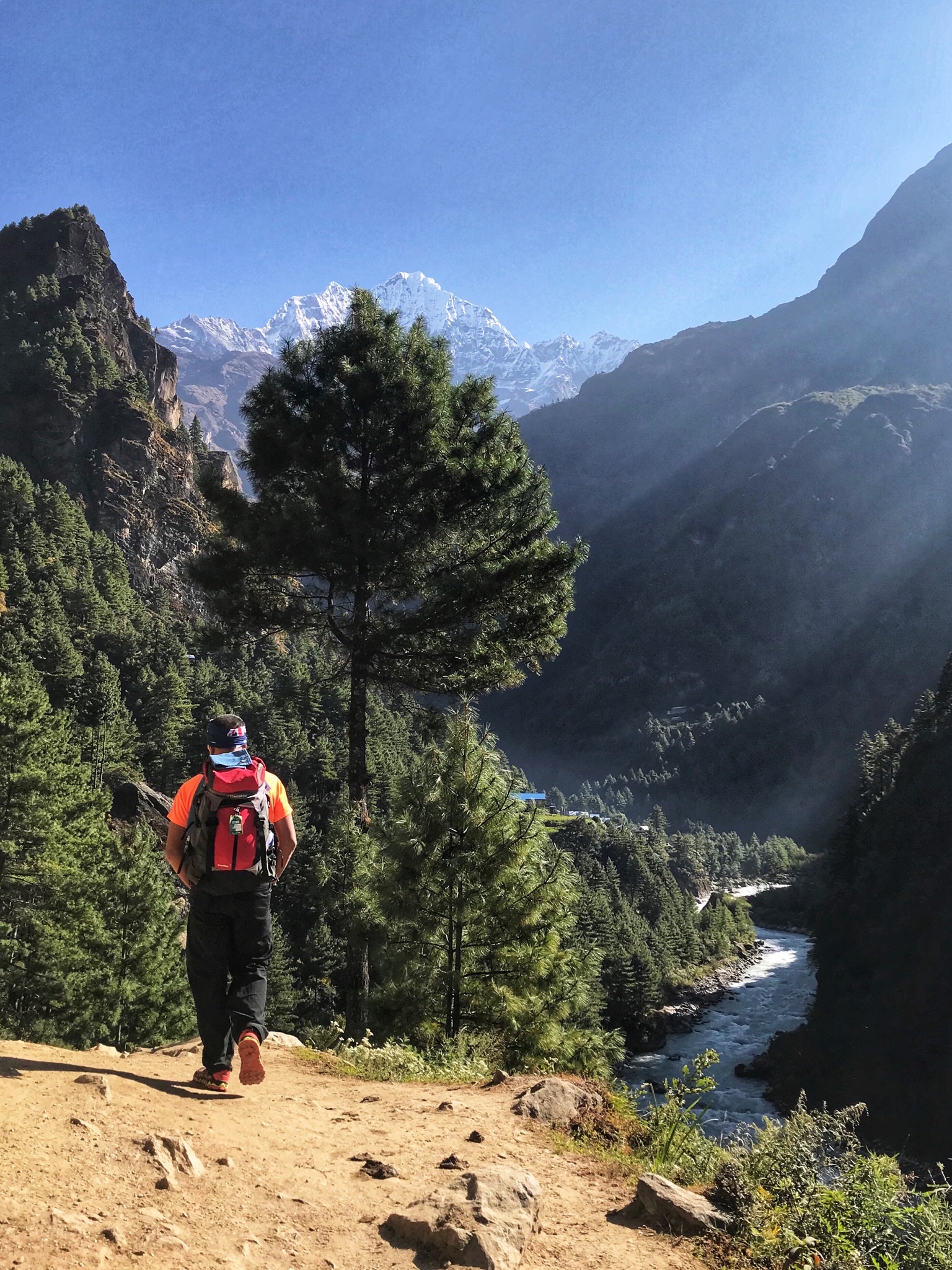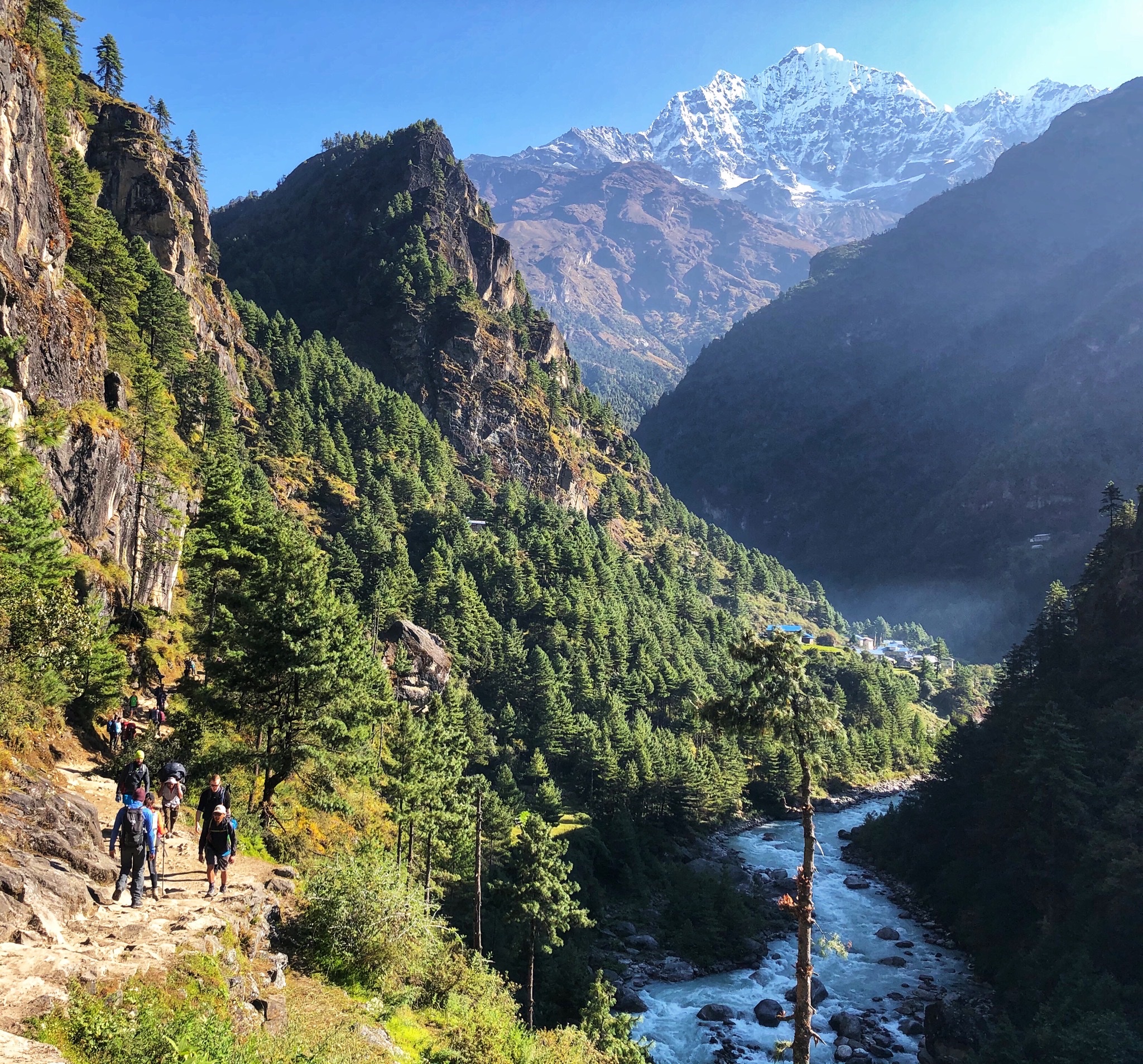 Perjalanan cepat 3 jam, makan siang di ketinggian 3.000 mdpl, rute selanjutnya adalah pendakian menuju Namche Bazar (3.440 mdpl).