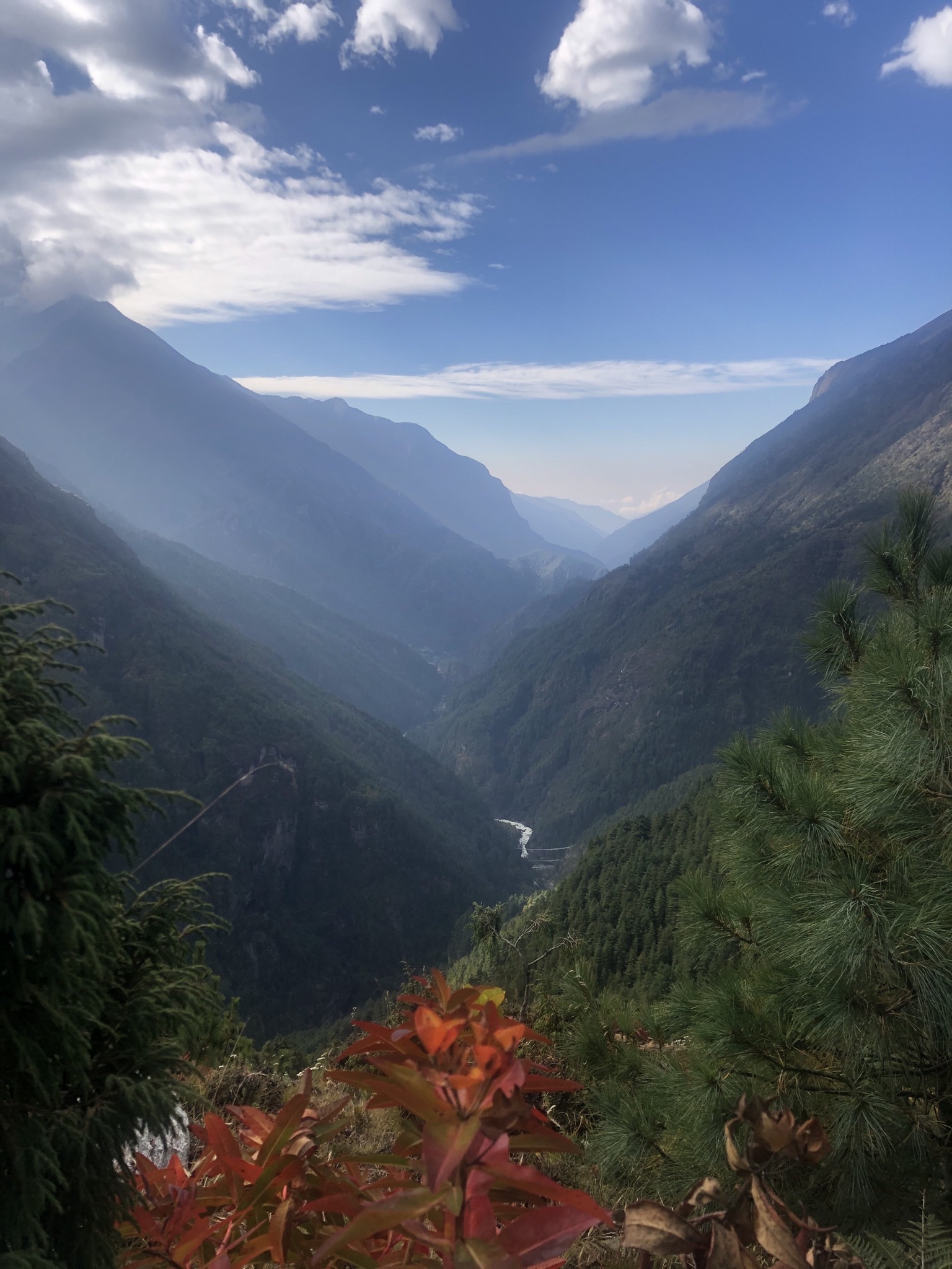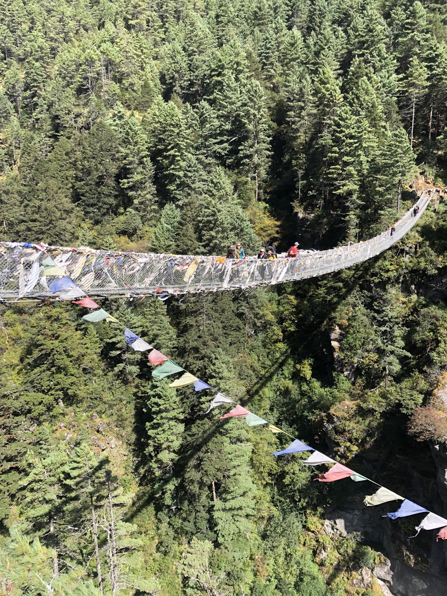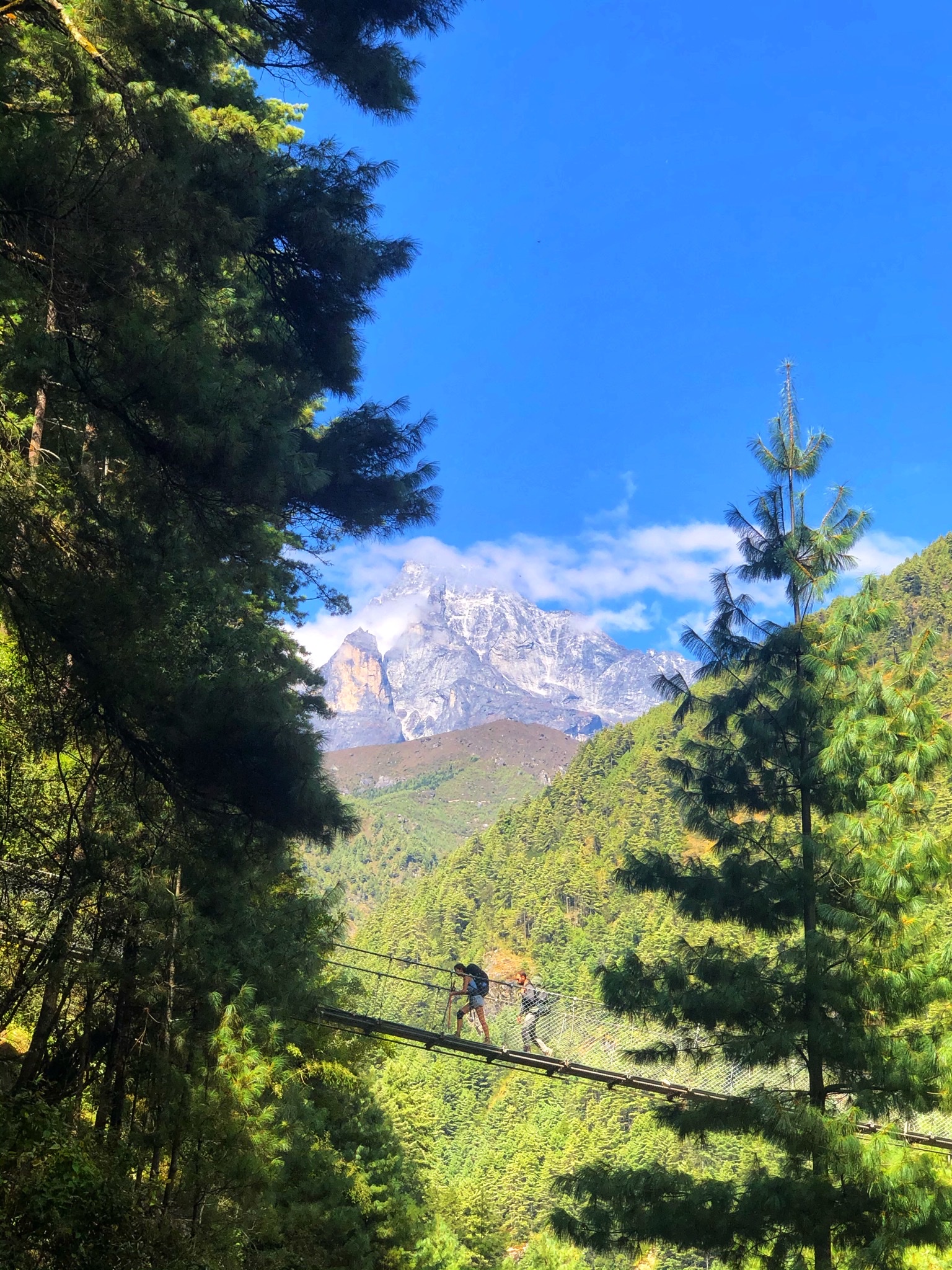 Jalan kemudian menurun menuju sungai, tempat makan siang, river side. Kepala mulai bingung untuk menu, pilihan kembali ke mie kuah Korea dan nasi putih. Plus cabe rawit yang horror itu. Ada turunan, ada tanjakan. Itu menu setelah makan siang. Lumayan, kombinasi dari mie-nasi-cabe, cukup untuk mengangkat tubuh hingga ke ketinggian 3.876 mdpl, Tyangboche!