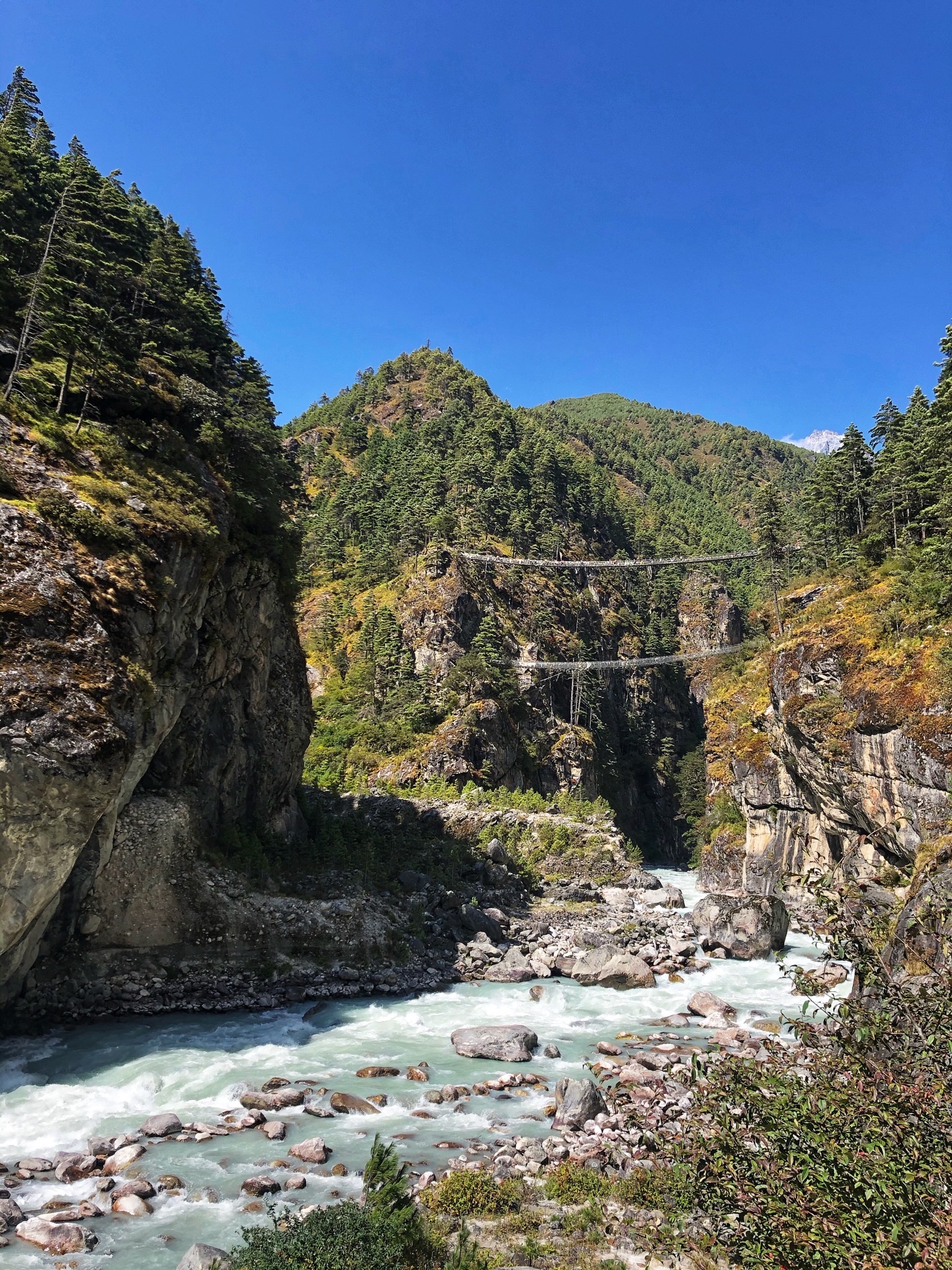Suguhan pemandangan indah mulai terbentang sepanjang jalan di hari pendakian kedua. Puncak-puncak gunung es, milky river, jembatan gantung, air terjun, bentang alam, lembah dan jurang, yang merupakan bagian dari Sagarmatha National Park.