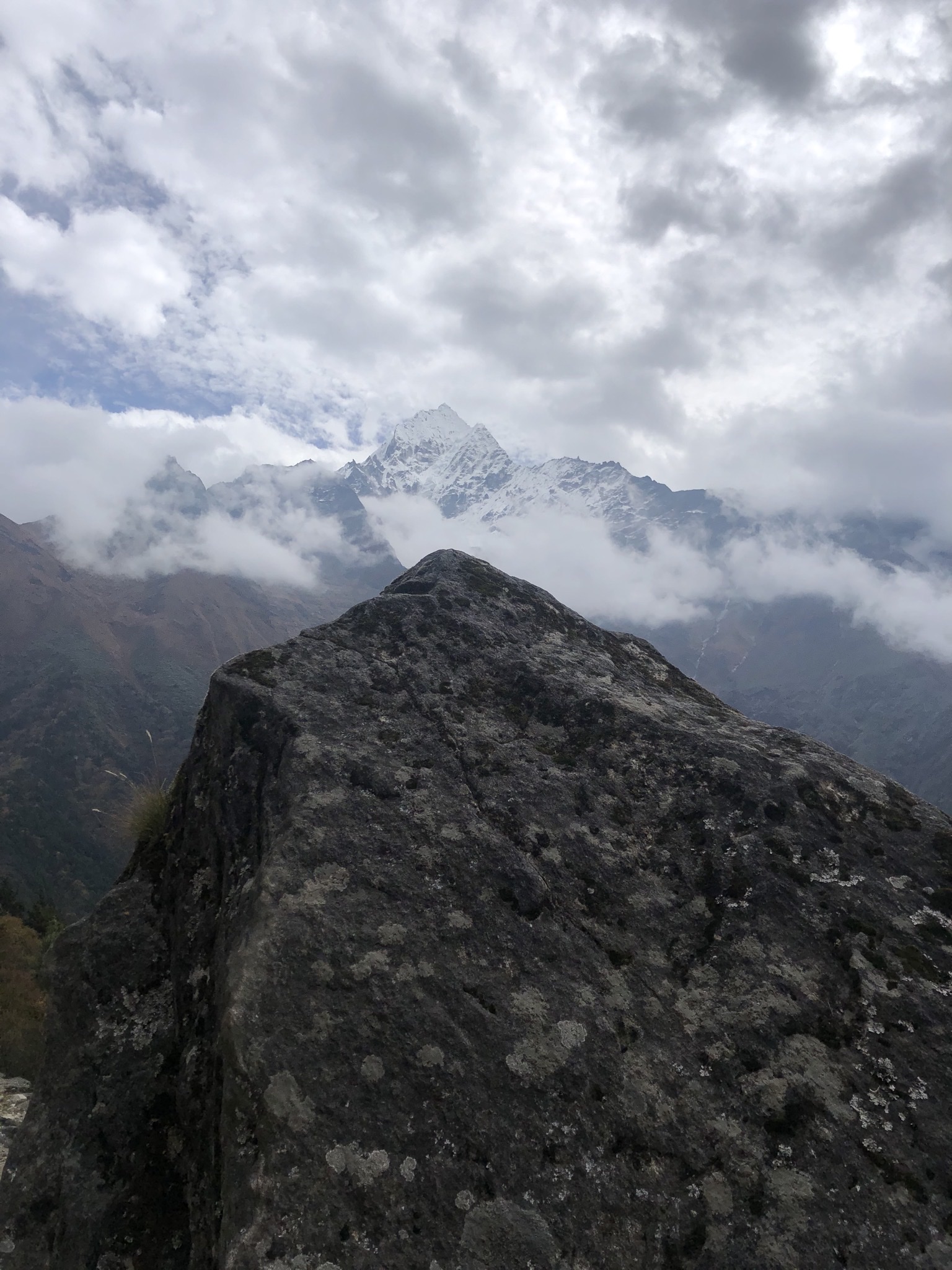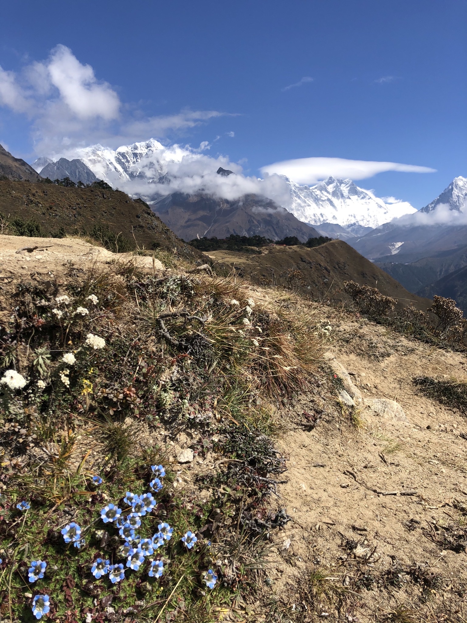Selanjutnya hamparan bukit lapang, 3.775 mdpl, berkali-kali helikopter terbang kian kemari. (Helikopter carteran untuk pendaki berkantong tebal, baik yang mau naik maupun turun, ke atas ataupun ke bawah, enaknya.) Pemandangan dalam terik matahari dan angin sejuk membuat betah berlama-lama, seolah setiap titik layak untuk diabadikan, hingga terlambat mencapai titik tujuan, Hotel Everest View, 3.880 mdpl. Kabut sudah menutup Puncak Everest, pukul 12 siang lewat.