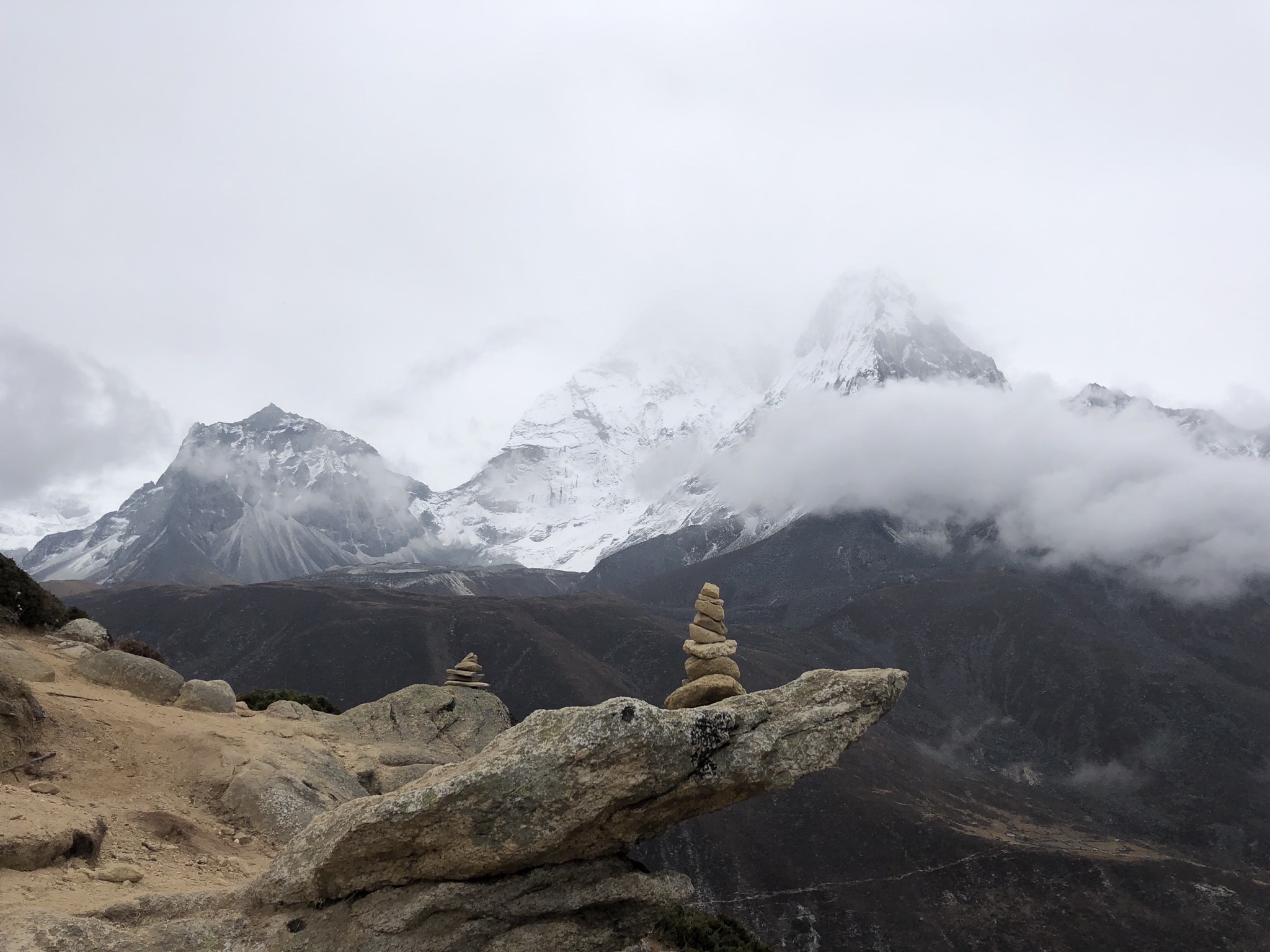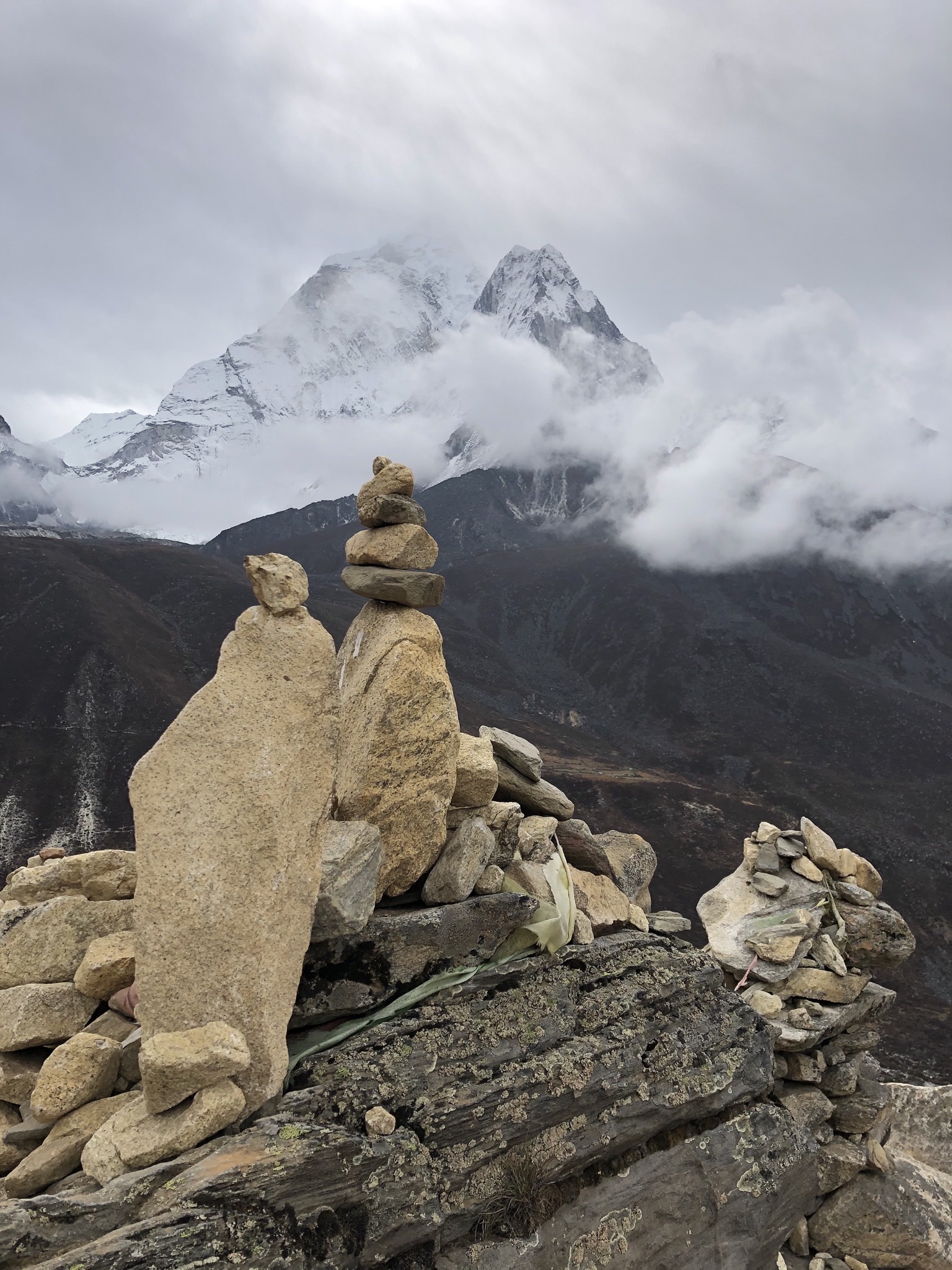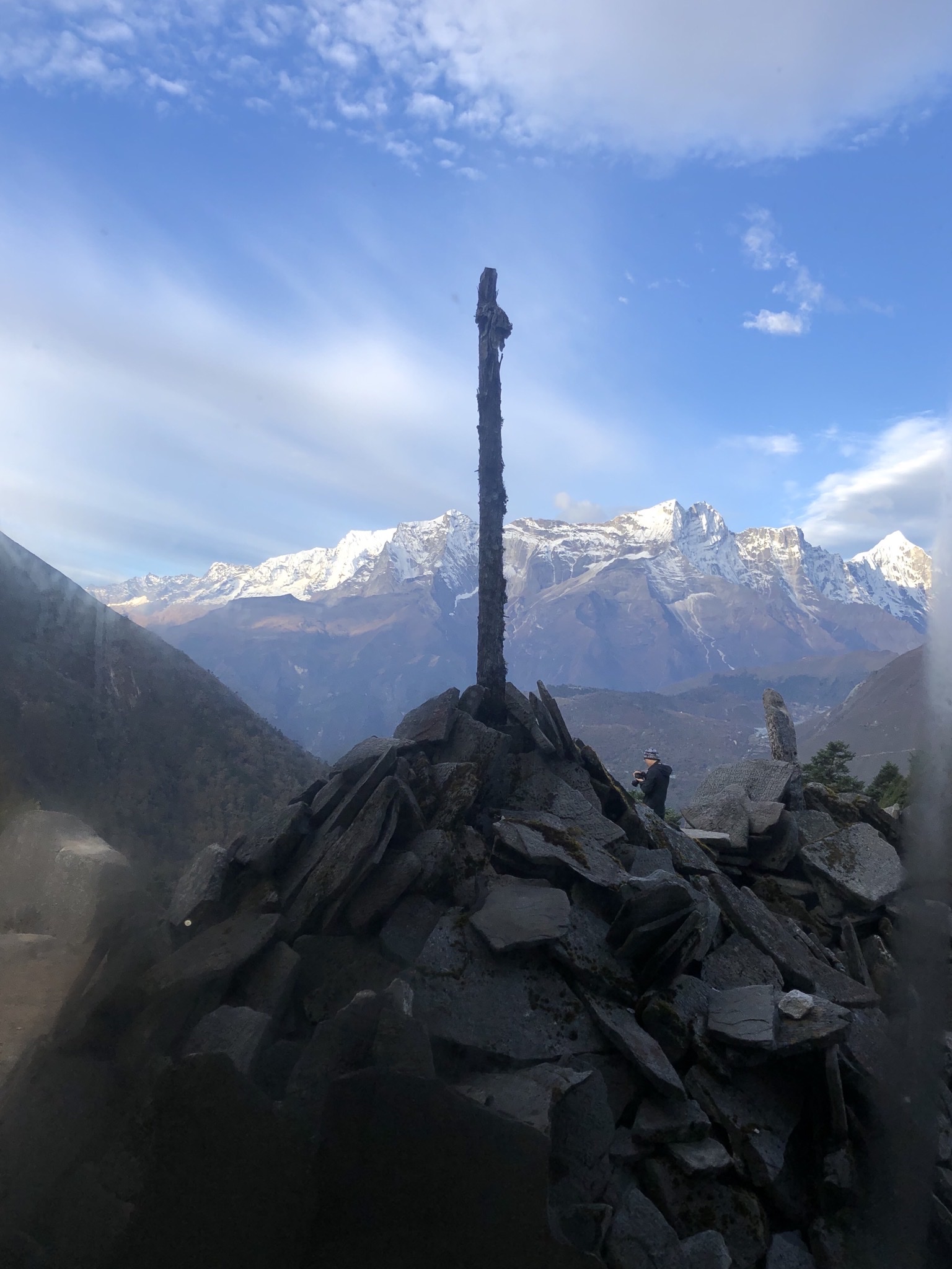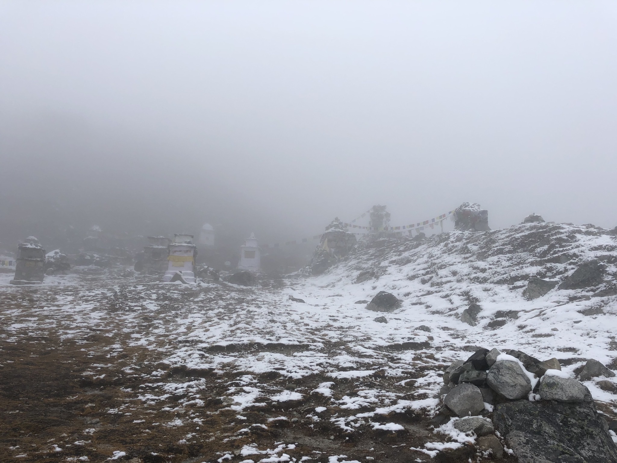 Menanjak dan terus menanjak, dan ujung atasnya adalah Everest Climbers Memorial, sebuah lokasi tempat mengenang para pendaki dan sherpa yang meninggal dunia di kawasan Pegunungan Himalaya. Batu monumen berbagai bentuk, dimana-mana, begitu banyak. Dingin, putih dan berkabut. Nuansa kesedihan terasa.