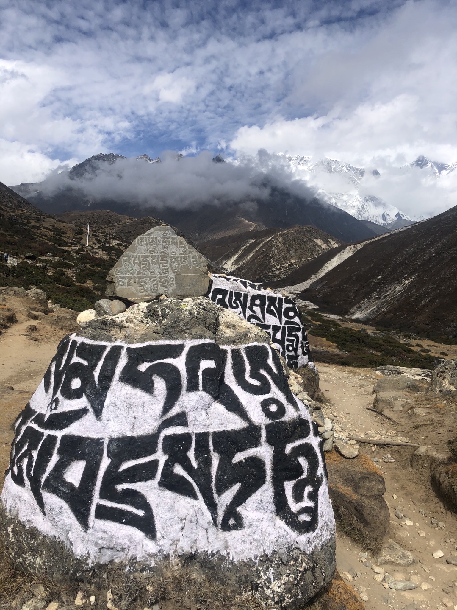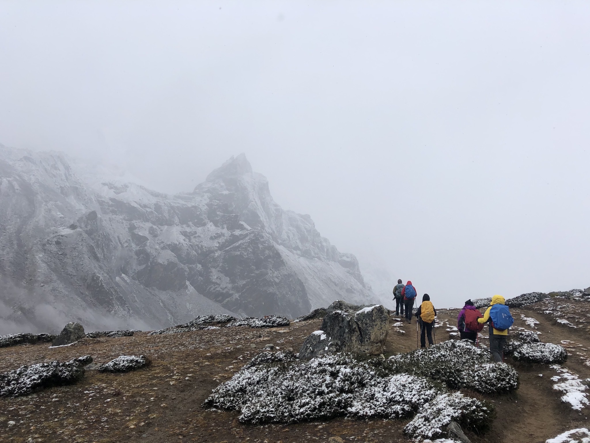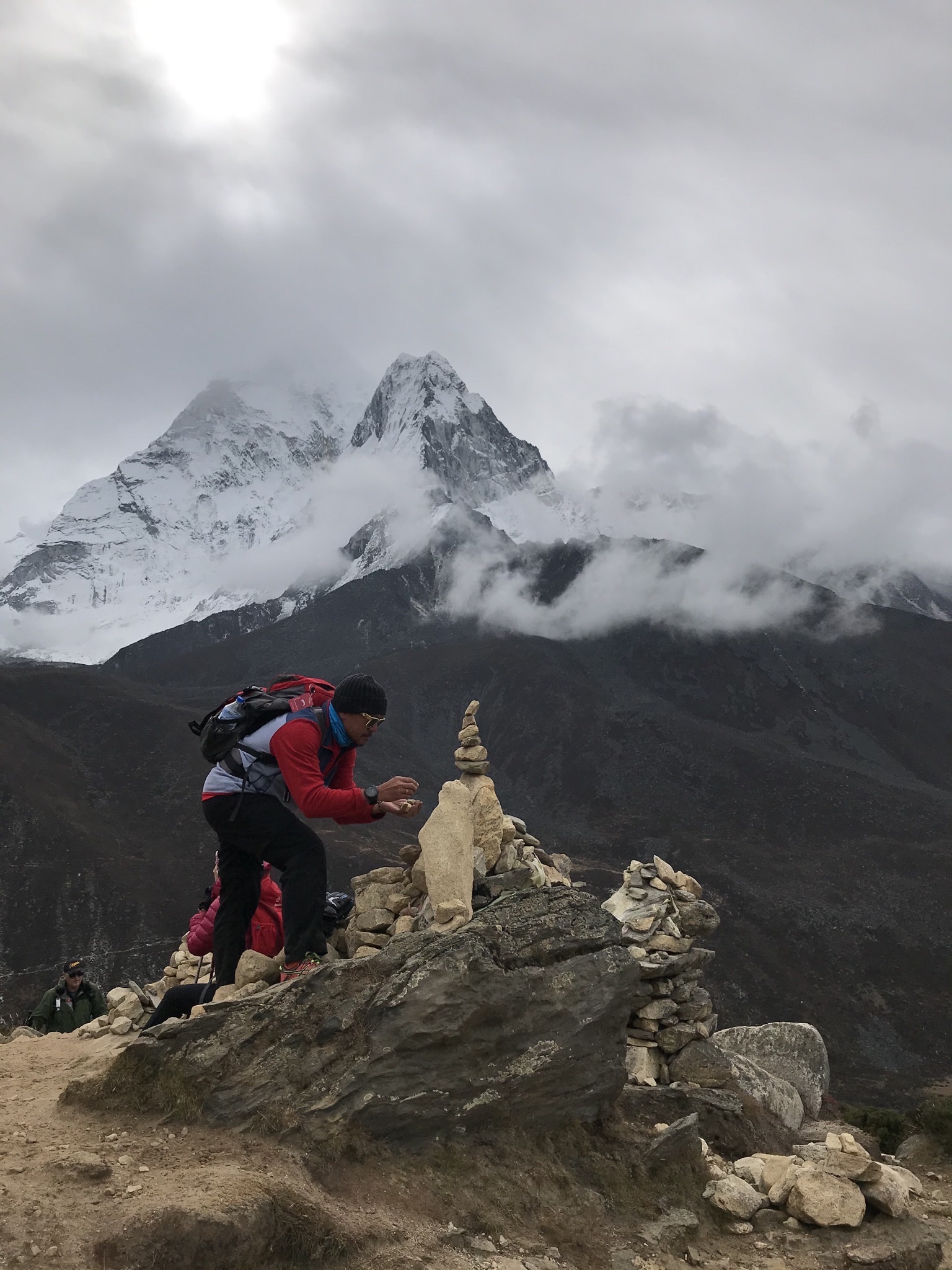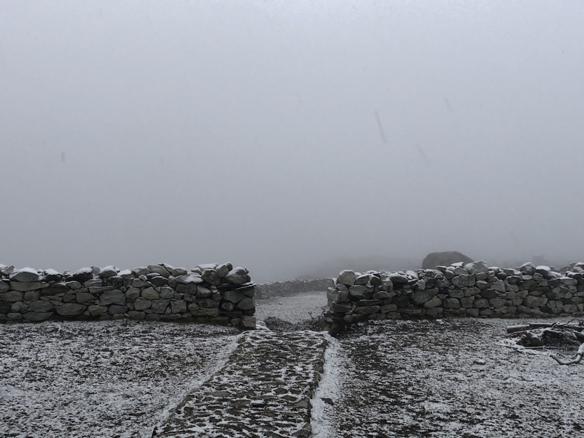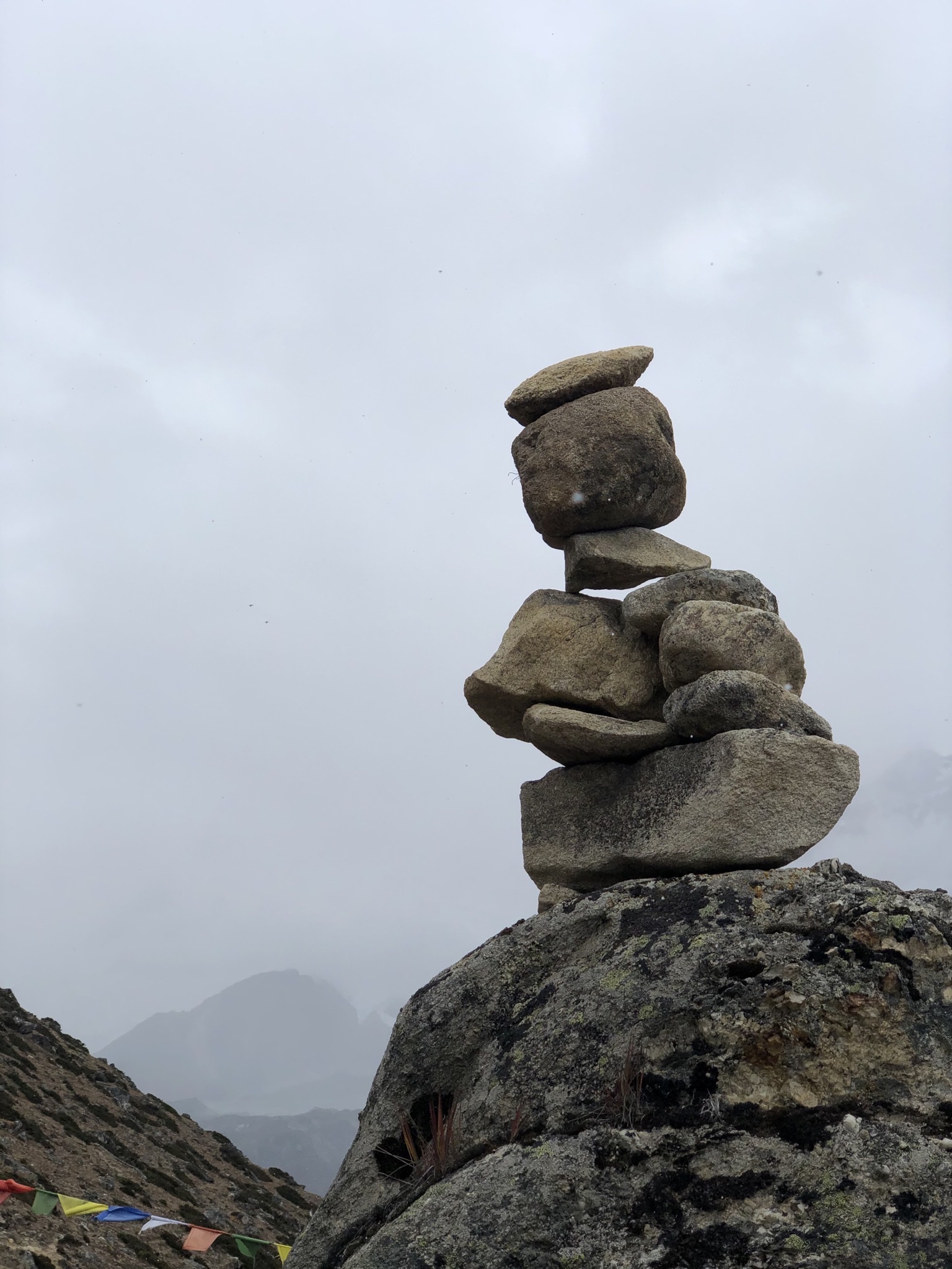 Menanjak dan terus menanjak, dan ujung atasnya adalah Everest Climbers Memorial, sebuah lokasi tempat mengenang para pendaki dan sherpa yang meninggal dunia di kawasan Pegunungan Himalaya. Batu monumen berbagai bentuk, dimana-mana, begitu banyak. Dingin, putih dan berkabut. Nuansa kesedihan terasa.
