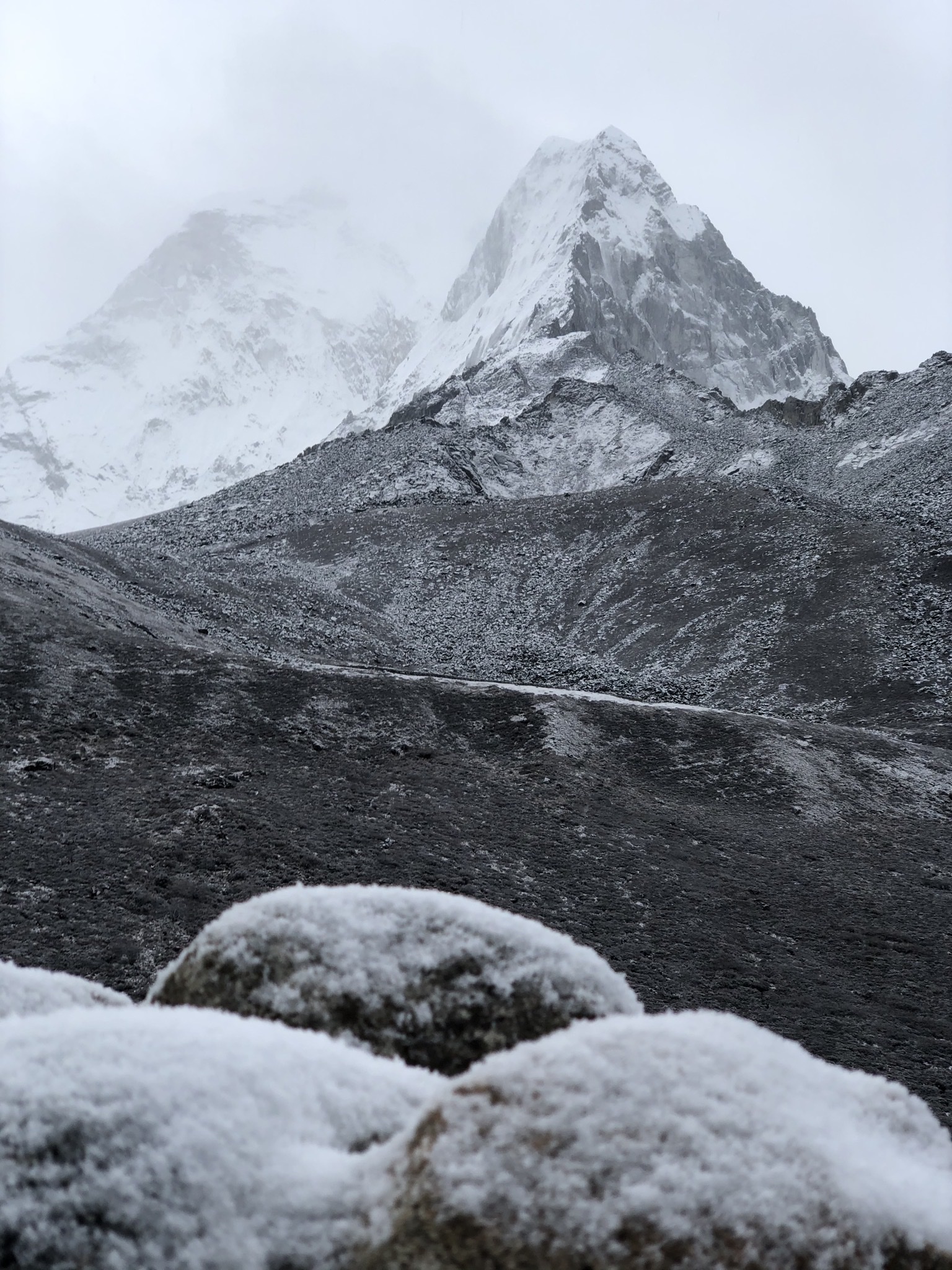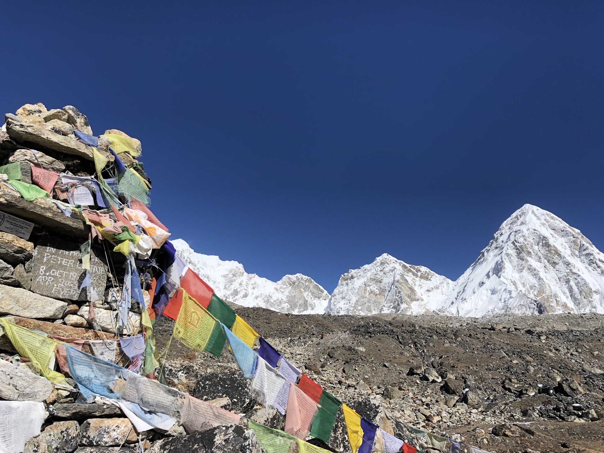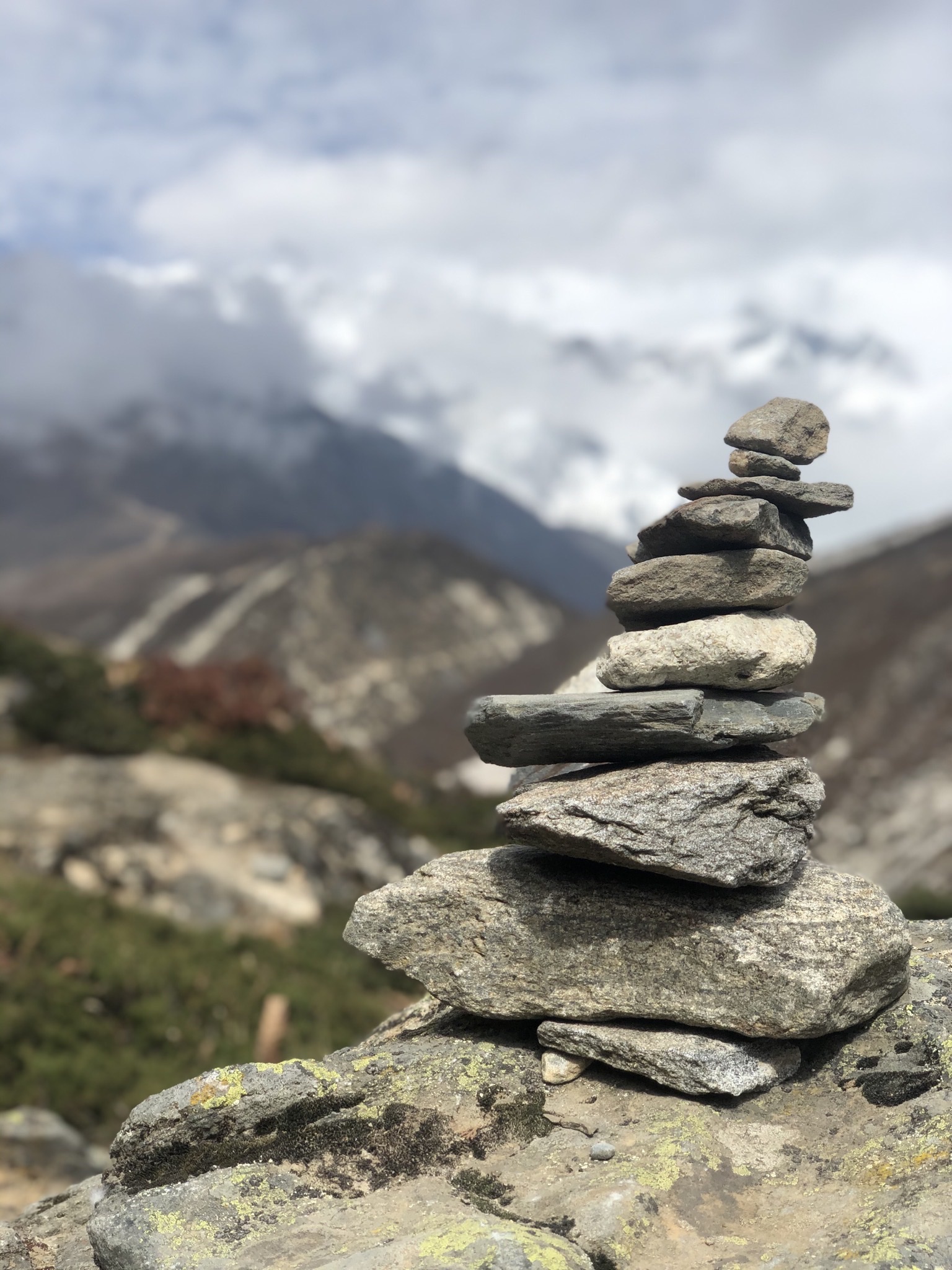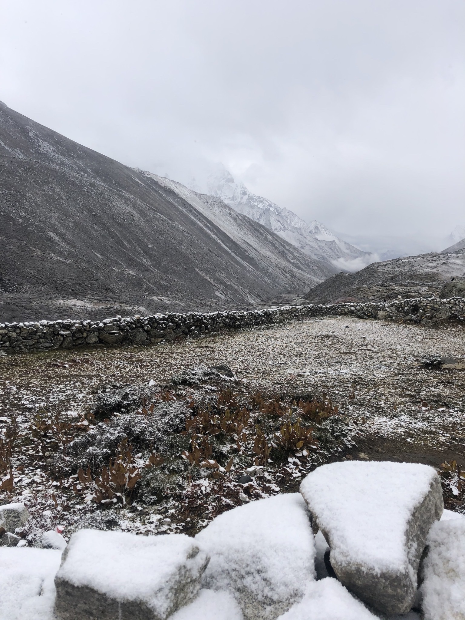 Menanjak dan terus menanjak, dan ujung atasnya adalah Everest Climbers Memorial, sebuah lokasi tempat mengenang para pendaki dan sherpa yang meninggal dunia di kawasan Pegunungan Himalaya. Batu monumen berbagai bentuk, dimana-mana, begitu banyak. Dingin, putih dan berkabut. Nuansa kesedihan terasa.