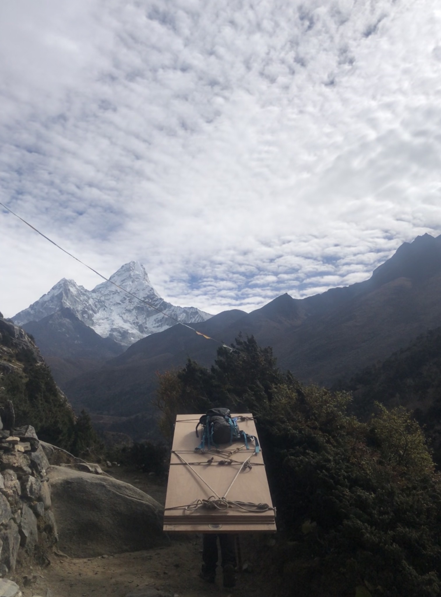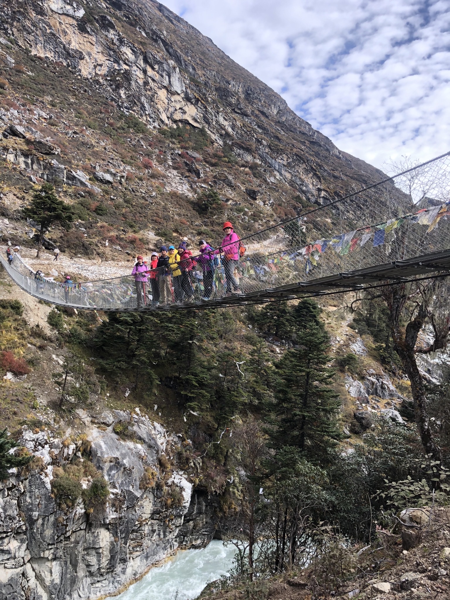 Dingboche, adalah tujuan hari kelima, 4,410 mdpl. Menurun dalam hutan rindang, melewati jalan bebatuan yang tengah diperbaiki, melintas jembatan gantung tinggi dengan aliran sungai deras di bawahnya, mendekati sebuah stupa besar, dengan lukisan Budha’s Eyes yang menatap ke semua arah.