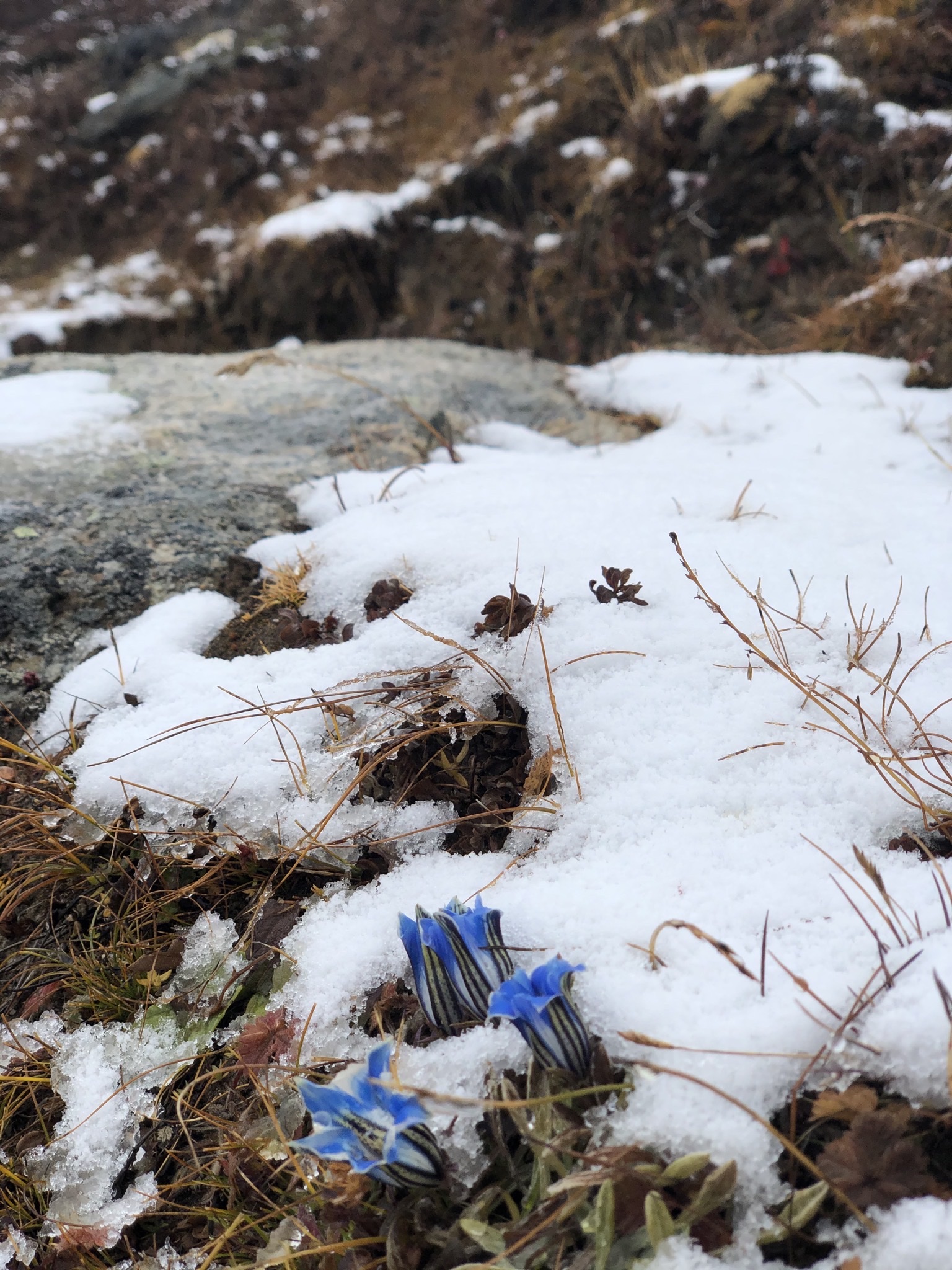 Sebelum jam 11, setelah 3 jam mendaki, kami turun kembali. Aklimatisasinya cukup, not bad. Angin bertiup membawa butiran halus salju, jatuh menempel di jaket. Aku menengadah membuka mulut, menikmatinya.