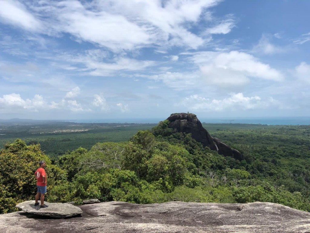 Dengan water station dan titik regrouping setiap 5K, target tengah perjalanan 25K adalah Bukit Peramun, pukul 11.00. Lokasi eko wisata yang terjaga bersih, bukit yang menyelamatkan Belitong dari ancaman krisis air ini, adalah hutan lindung alami dengan tanaman-tanaman berkhasiat obat (peramun, ramuan, nyambung toh?) dan pohon-pohonnya yang kalau malu ditanya namanya, cukup di-scan saja pada barcode yang tertempel.