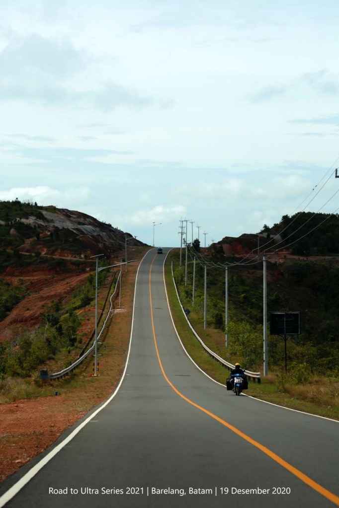 Di Pulau Rempang, terbentang lintasan terpanjang, lebih dari duapuluh kilometer, hingga mencapai jembatan kelima, Jembatan Tuanku Tambusai, yang menghubungkan dengan Pulau Galang. Matahari yang mostly bersahabat -infonya sih kebetulan aja sedang bersahabat, biasanya tak kenal ampun- dengan hujan yang absen hadir, menemani sepanjang perjalanan lurus naik turun. Hingga tiba di jembatan keenam, Jembatan Raja Kecik, berjarak sekitar satu full marathon dari titik start, memasuki pulau terujung, Pulau Galang Baru, lalu melanjutkan sisa sekitar delapan kilometer terakhir, menggenapi angka limapuluh, di titik finish.