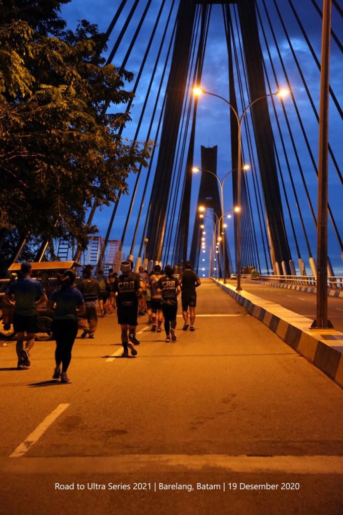 BangLexi mengomandoi lima pelari dari Jawa, Mike-Anne-Renato-Carla-NH, plus support dari Babab, Tande, Mamio, dan dengan dukungan antusias dari pelari-pelari Batam, start pukul 05:39 pagi 19 Desember 2020 dari bibir jembatan pertama, jembatan terbesar dan terpanjang, Jembatan Tengku Fisabilillah yang masih menyisakan lampu-lampu indahnya. Tidak sampai sepuluh kilometer, rombongan telah melintasi tiga jembatan lainnya, Jembatan Nara Singa, Jembatan Raja Ali Haji, dan Jembatan Sultan Zainal Abidin, tiba di pulau kelima, Pulau Rempang, setelah Pulau Batam, Pulau Tonton, Pulau Nipah, dan Pulau Setotok.