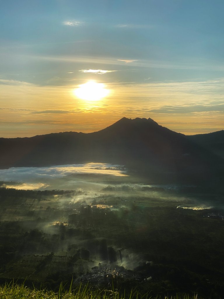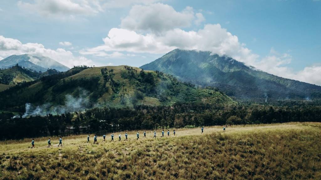 Pagi subuh, 3 April 2021, matahari baru saja menampakkan diri, menyertakan lembayungnya. Dari area start Ijen GeoParkRun di Megasari, Bondowoso, barisan puncak-puncak pegunungan di seberang timur sana adalah raja bumi bertahta mahkota cahaya. Megah mempesona. Awan dan kabut putih masih menyelimuti kaki-kaki gunung dan rumah-rumah penduduk di bawahnya. Dayang-dayang yang sebentar lagi akan terbang ke angkasa, untuk kembali lagi keesokan harinya.