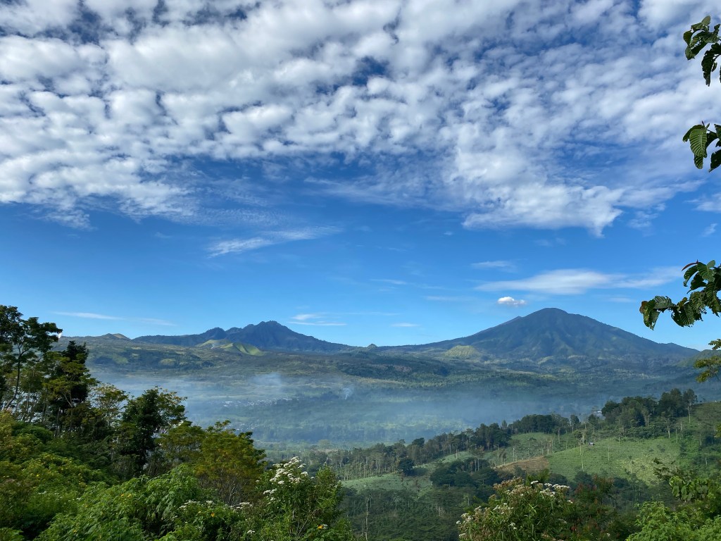 Langit biru cerah, awan putih berarak, kebun kopi berbiji hijau tua, bunga warna-warni yang tumbuh begitu mudah, dan indah. Mengarah ke Arabica Homestay di 1.100 mdpl, tempat kami -para pelari dari Jakarta, Bandung, Surabaya, Makassar- menginap malam sebelumnya, plus jamuan makan malam dari Wakil Bupati Bondowoso, berbaur dengan rombongan teman-teman media yang meliput, beserta team kabupaten yang ramah menjejali kami dengan durian (ohmaigot!), dan buah tangan macam kripik tape (pastinya, Bondowoso Kota Tape), kopi Arabica Ijen, kantong kecil kopi pengharum mobil (konon katanya bisa juga dibawa saat kita naik busway).