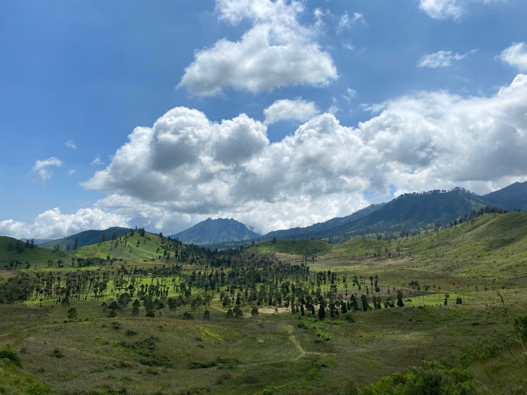 Mengukur suhu dan membasuh tangan dengan sanitizer, sebelum melalui gerbang, protokol kesehatan tetap berjalan. Langit mulai kelabu, hujan mulai turun, semakin lama semakin deras, udara menjadi dingin. Jas hujan? Endah, pendaki pelari asal Banyuwangi menjawab, โTidak, hujan adalah kawan.โ Aku bersorak, yeay! Begitulah makna hujan. Ada adalah kawan, tiadapun adalah kawan. Itulah hujan. Itulah kawan.