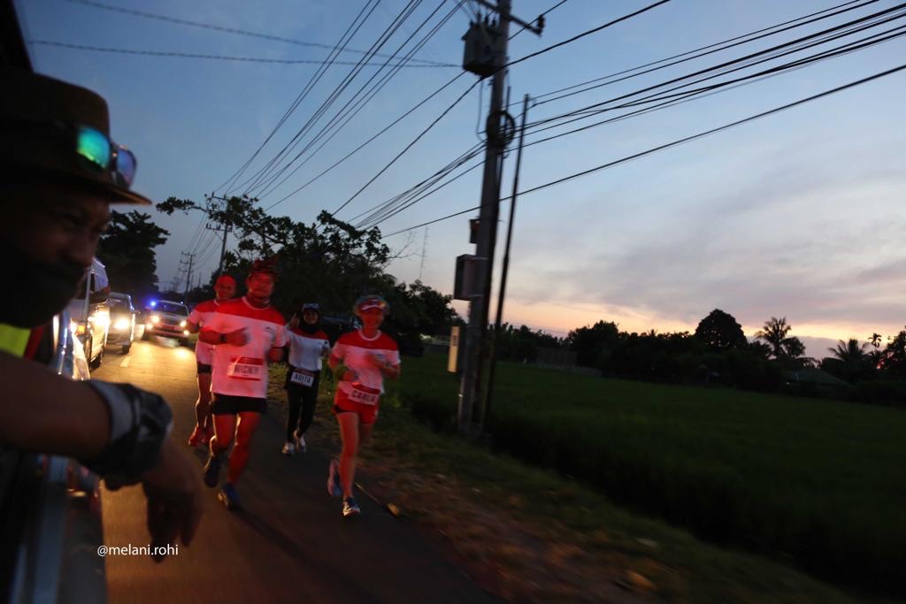 Tujuan kami, Masjid Kuno Loloan, masih empat puluh kilometer ke depan. Setelah menempuh dua puluh kilometer pertama, sejak dini hari, pukul 05:57, 19 Juni 2021, selepas Bupati Lombok Utara mengibarkan bendera start di kantornya di Tanjung. Rombongan kecil pelari meniti aspal sepanjang pesisir pantai, menyaksikan pesona semburat aneka warna lembayung pagi, menghirup angin sepoi laut. Beristirahat di check point pertama, SDN Kayangan, dengan suguhan kelapa muda, buah pisang, ubi rebus, minuman hangat dan dingin. Serta prosedur wajib, mengukur tekanan darah dan kadar oksigen darah. Bapak Kepala Sekolah yang tadi menyambut ramah, kembali melepas kami di gerbang sekolah. Azura dan teman-temannya yang sedang bermain di jalanan berhamburan, ikutan berlari bersama kami.