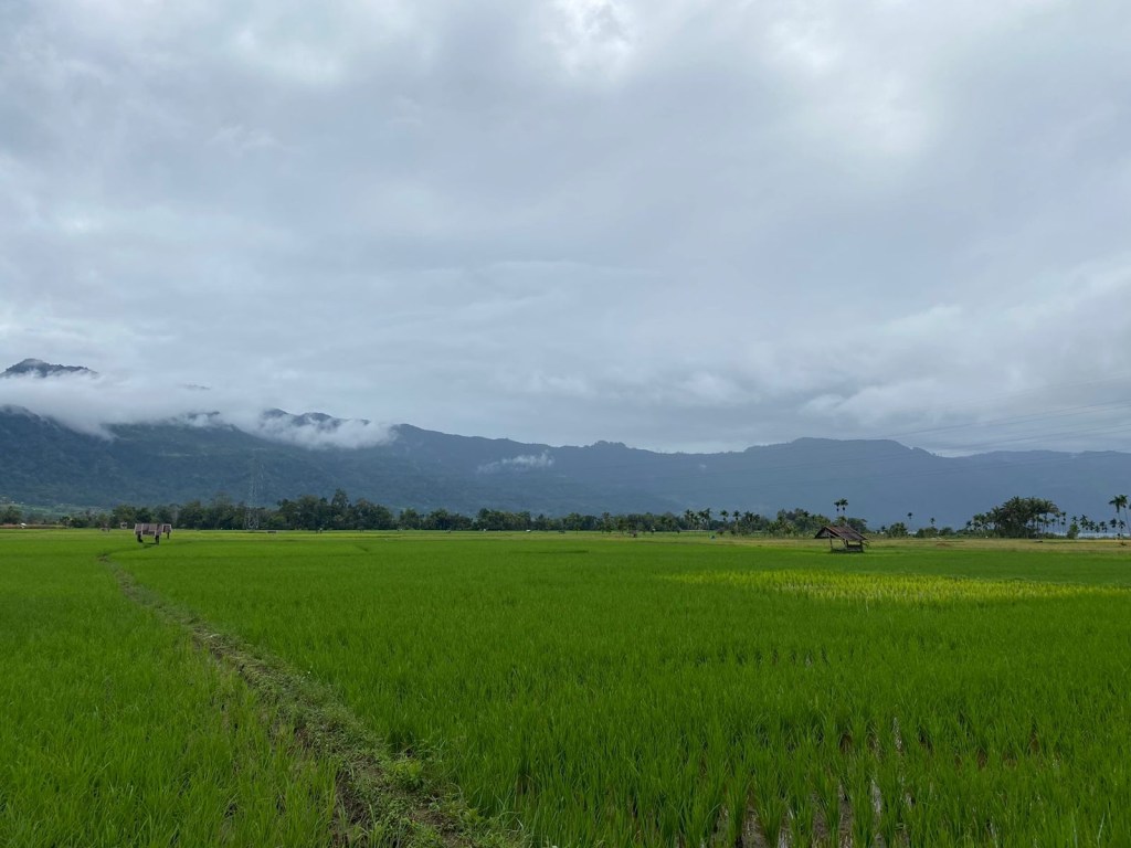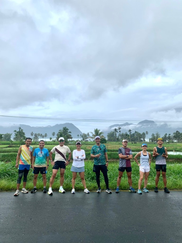 Tanggal 24 September 2022, pukul 07.13, suhu 20 derajat Celcius. Sedikit kesiangan, tapi ademnya ideal, dan mewah. Tanpa matahari, cenderung mendung. Gerimis tipis, sangat tipis, “Gua gak keberatan kalau gerimis gini terus-terusan, sampai selesai larinya”. Seperti biasa, melintasi pemukiman warga. (Bosan juga dengan kalimat ngulang-ngulang begini seperti cerita-cerita runventure sebelumnya, tapi ya mau gimana lagi, memang begitulah kenyataannya. Eh, tetap ada kok bedanya. Sapaannya dong, “Pagi Uda, pagi Uni, pagi Mak”. Ah, Indonesia terbaeklah!) Aspal hitam basah diapit hamparan warna warni hijau kuning coklat sawah di kiri kanan jalan. Petani terbungkuk membajak. Kawanan bangau beterbangan. Langit putih, digelayuti awan tebal putih. (Jangan lupa berfoto gaya dulu, bertegur sapa dulu, berchit chat dulu, hidup gak cuma soal lari kok, don’t take it too seriously.) Berlari santai melawan arah jarum jam, dengan danau dan tambak-tambak yang tersebar di permukaan danau, di sisi kiri. Gunung Singgalang memandang dari jauh, “What’s on your mind, Runners?”