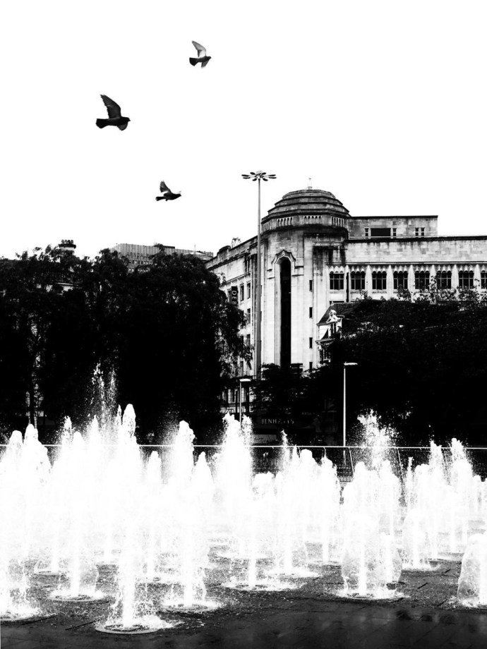 Piccadilly Garden. Deretan puluhan air mancur di lingkaran bulat tengahnya yang menyembur naik turun dari lantai, yang sebentar kemudian reda tiarap, memberi waktu kepada seorang anak berlari riang melintas, sebelum air memancur kembali. Kepada seorang remaja di kursi rodanya yang tertawa lepas didorong temannya, dalam sorot mata seorang ibu yang menatap lurus, menggenggam tangan anak remajanya yang down syndrome, yang duduk terpana di sebelahnya. Yang memberikan kesempatan kepada para pengunjungnya untuk saling memperhatikan dan memandang dari seberang ke seberang, sebelum dikaburkan kembali oleh semburan air dan waktu.