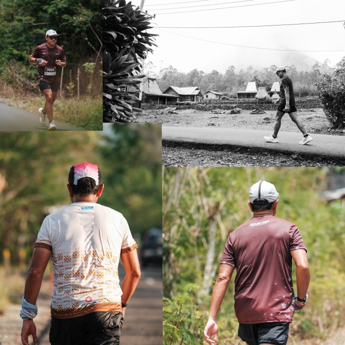 Aku telah menempuh 81 kilometer, sejak mulai berlari dari Lapangan Berdikari, Mbay-Nagekeo. Aku telah dipanggang 3 matahari Nusa Tenggara Timur, sejak start pukul 3 kemarin sore. Aku bahkan telah “menyerah” di KM3, mengganti lariku dengan kombinasi berjalan dan berlari, sambil mendaki dan terus mendaki ribuan meter elevasi-gain menuju Bajawa. Aku yang tak mampu melawan beratnya kelopak mata, terkapar 20 menit tengah malam, di atas deretan empat kursi, di ruangan SDK Nageoga-Boawae, KM53. Aku yang masih terus melangkah dengan badan terhuyung dan mata tertutup, tidur tanpa mimpi. Aku yang mengarungi malam panjang menuju subuh, memanggil matahari pagi, menantikan sinar ramahnya mengusir gelap dan hangat lembutnya menggantikan dingin. Aku telah berusaha menjaga agar tetap sadar dan awas, menjaga kondisi dan stamina, menjaga mental dan semangat, menjaga kaki dan kepala, menempuh jarak dan menembus waktu, memasuki “the unknown zone” di depan sana dan di dalam sini, di balik tubuh ini.